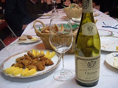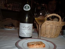 シノン.ブラン (シェナン・ブラン100%) 白ワインの生産の少ない場所です 甘っとろい香り、ハチミツのような、時間が経つとざくろや イチジクの香りが出てきた。味は酸味が強く、辛口ワイン リュリー.ブラン (シャルドネ100%) プイイ.フュメ (ソーヴィニヨン100%) |